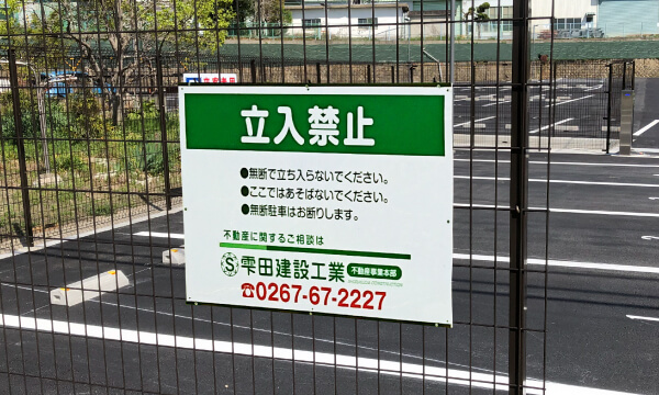 お客様を分かり易く駐車スペースへと案内したり、トラブルを防ぐために必要な看板です。